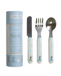 This gorgeous Rufus Rabbit Boy Cutlery Set comes in an adorable neat little tube containing your very own Rufus knife, fork and spoon. Perfect for little ones learning to use cutlery this is the ideal first set. With delightful blue polka dots and Rufus Rabbits on the little tube and cutlery this melamine set is wonderful.£10.00
