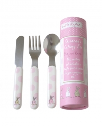 This gorgeous Rufus Rabbit Girl Cutlery Set comes in an adorable neat little tube containing your very own Rufus knife, fork and spoon. Perfect for little ones learning to use cutlery this is the ideal first set. With delightful pink polka dots and Rufus Rabbits on the little tube and cutlery this melamine set is wonderful.£10.00