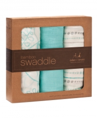 This pack of three Aden and Anais Azure Swaddles are made from 100% cotton muslin and beautifully decorated with delightful blue patterns. The fabric is light with an open weave allowing the baby to regulate its temperature naturally, which will help prevent overheating. These swaddles are so soft and gentle on delicate skin, but are also durable for everday use. These swaddles are extra large, measuring 120cm x 120cm making. . .£40.00