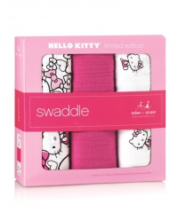 This pack of three Aden and Anais Hello Kitty Swaddles are made from 100% cotton muslin and beautifully decorated with delightful blue patterns. The fabric is light with an open weave allowing the baby to regulate its temperature naturally, which will help prevent overheating. These swaddles are so soft and gentle on delicate skin, but are also durable for everday use. These swaddles are extra large, measuring 120cm x 120cm. . .£40.00