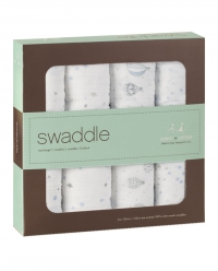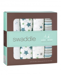 This pack of four Prince Charming Swaddles from Aden and Anais are made from 100% cotton muslin and are decorated with light grey and blue stripes, illustrative blue figures holding hands, and various sized stars in shades of blue and green. The fabric is light with an open weave allowing your baby to regulate his or her temperature naturally, which will help prevent overheating. These swaddles are so soft and. . .£45.00