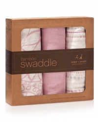 This gorgeous pack of three pink Aden and Anais Tranquility Swaddles are made from 100% cotton muslin. Each swaddle is beautifully decorated with delightful pink patterns. The fabric is light with an open weave allowing the baby to regulate its temperature naturally, which will help prevent overheating. These swaddles are so soft and gentle on delicate skin, but are also durable for everday use. These swaddles are extra large, measuring. . .£40.00