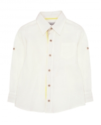 This delightful Baby Graziella linen boys' shirt is truly sophisticated. This Baby Graziella shirt is woven in off-white and features an off-white collar and a beautiful beige and yellow trim under the collar and behind the front trim for a look that stands out from the crowd. Wonderful brown buttons up the front and on the arms add a finishing touch. Perfect for special occasions this season, this Baby. . .�65.50 �45.85