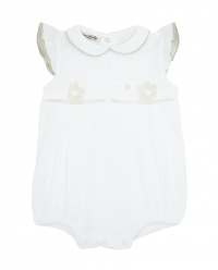 This classic white and beige Coccobirillo Romper with special details is absolutely divine. This adorable romper features crisp white cotton and thoughtful details throughout. Special details include exquisite little flowers on the chest, beige trim around the white collar and gorgeous short shoulders for a look that is simple, elegant, and truly special. White coated snaps make dressing quick and easy while creating any sleek look. Made. . .£37.50 £26.25